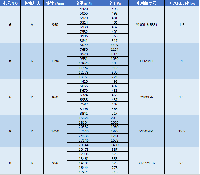 離心風(fēng)機性能表